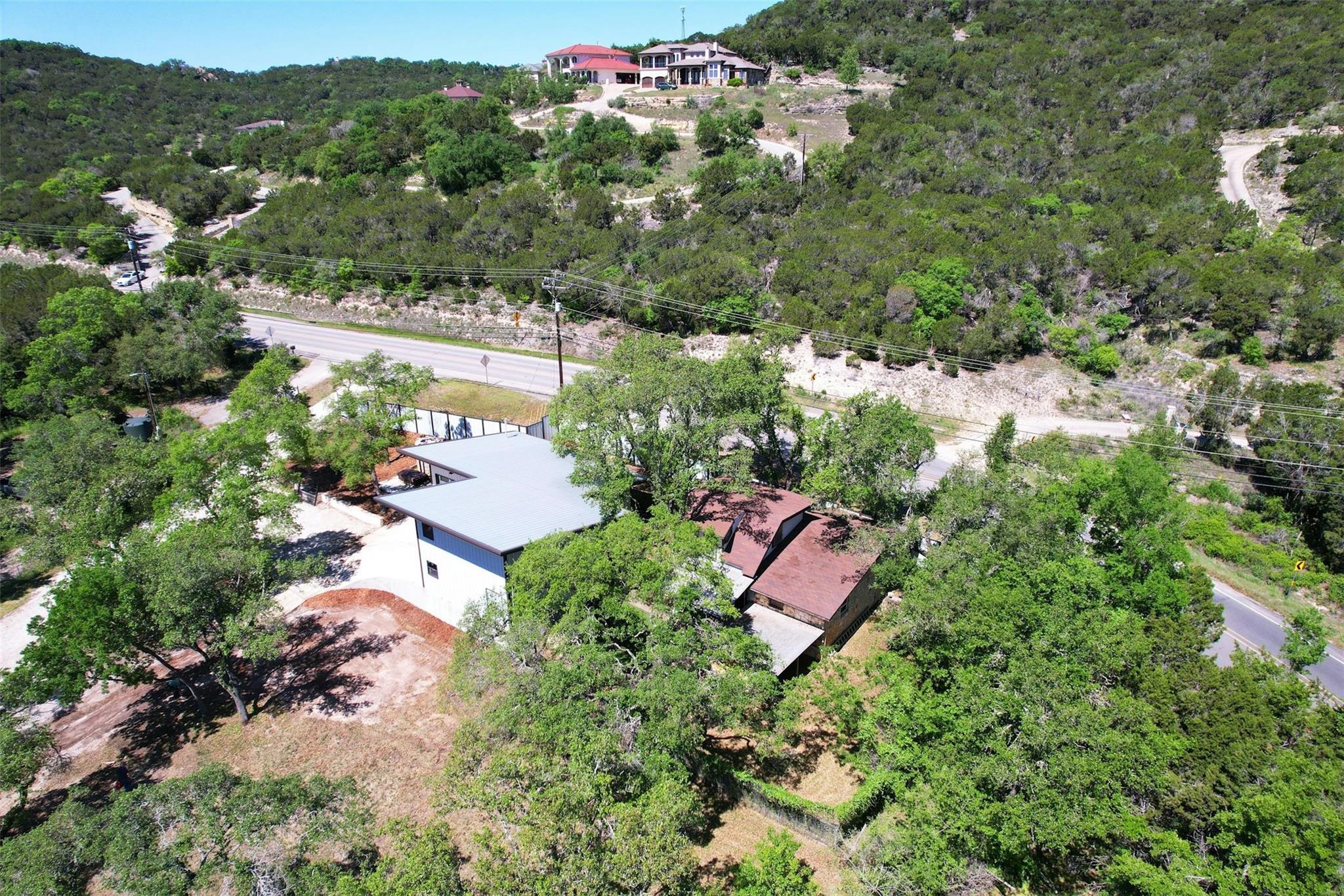 Open to seller financing. Current garage & proposed home are built & designed to be 2’ above 100 yr flood plain per Travis County building code. Nestled on 2.5-acres along serene shores of Lake Travis, this property presents a rare blend of natural charm & modern convenience. Majestic old oak trees dot the landscape, providing a picturesque backdrop & a tranquil retreat, regardless of the cove’s water levels. Lakeline Marina offers easy access to lake adventures just a stones throw away. The property includes a sophisticated workshop & garage with sleek monoline roof. Renowned architect & reputable engineering firm have meticulously prepared to construct a 2500 sq ft residence; plans convey. This planned single-story home features 3 bedrooms, expansive open floor plan, & vast wrap-around decks that invite breathtaking views. Additional architectural plans envision stairs leading up to a lofted viewing platform, offering expansive views of the northern canyon. Practicality meets innovation in the existing structures & plans though plans dont have to be used. The workshop & garage boast ample space, including 2-car 18 wide door & a larger 12 x 10 door, ideal for diverse projects or storing larger vehicles. Working well is currently in use, while future enhancements include a sophisticated rainwater collection system designed to sustain a 5-person household. The design also incorporates a concealed lower level for water storage tanks & potentially a RV garage, ensuring functionality complements the clean aesthetic. The electrical infrastructure is thoughtfully placed underground, featuring 400-amp panel ready to service both home and workshop. Utility preparations are complete, water lines & electrical connections extended to the planned home site & fiber-optic access at the main road. Adding to the property’s allure is a charmingly updated 2-bedroom cabin, perfect as a guest house or temporary residence during construction.